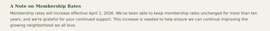 Payment of dues to the civic association is not required. However, your participation allows us to continue our work to better the neighborhood of East Montrose.